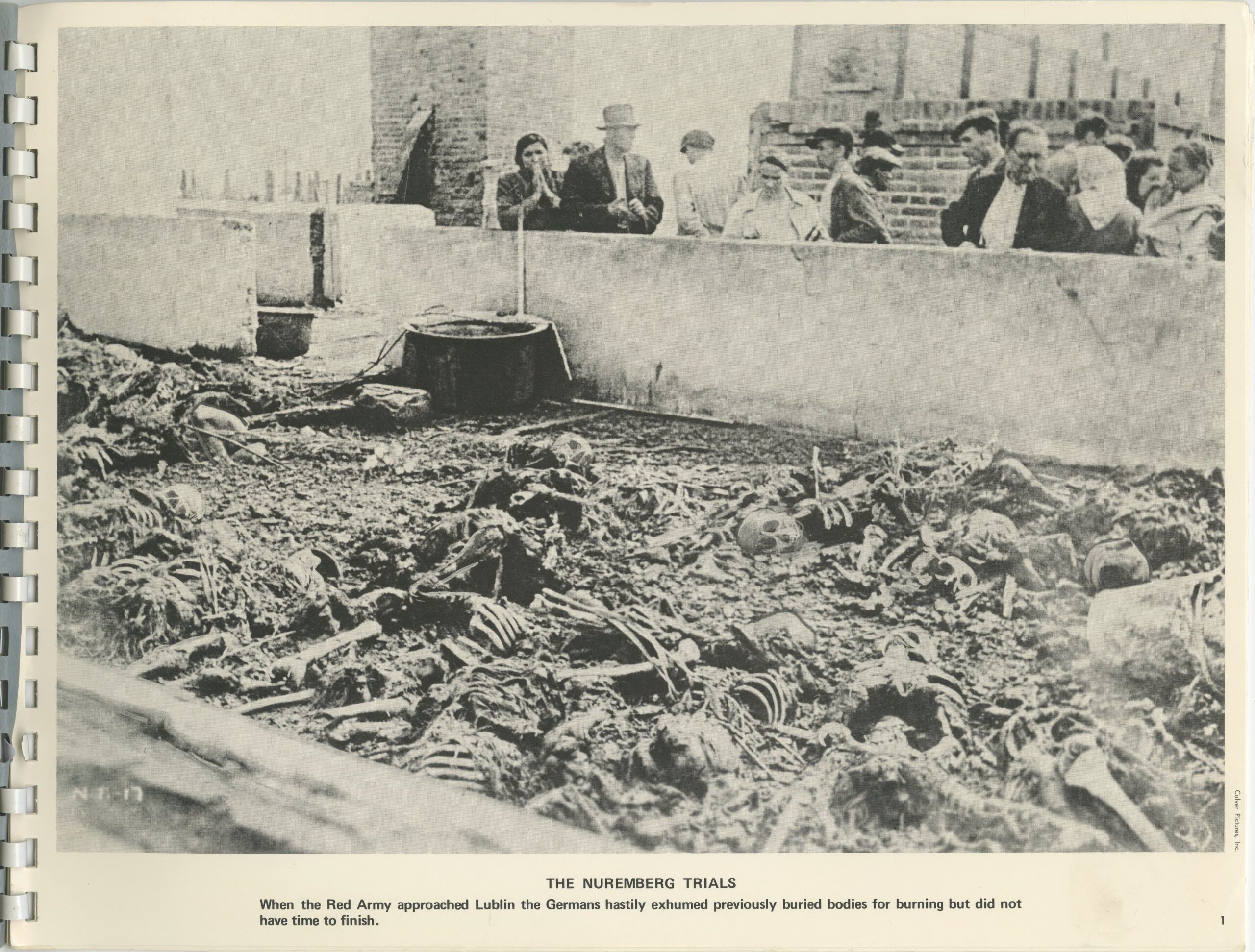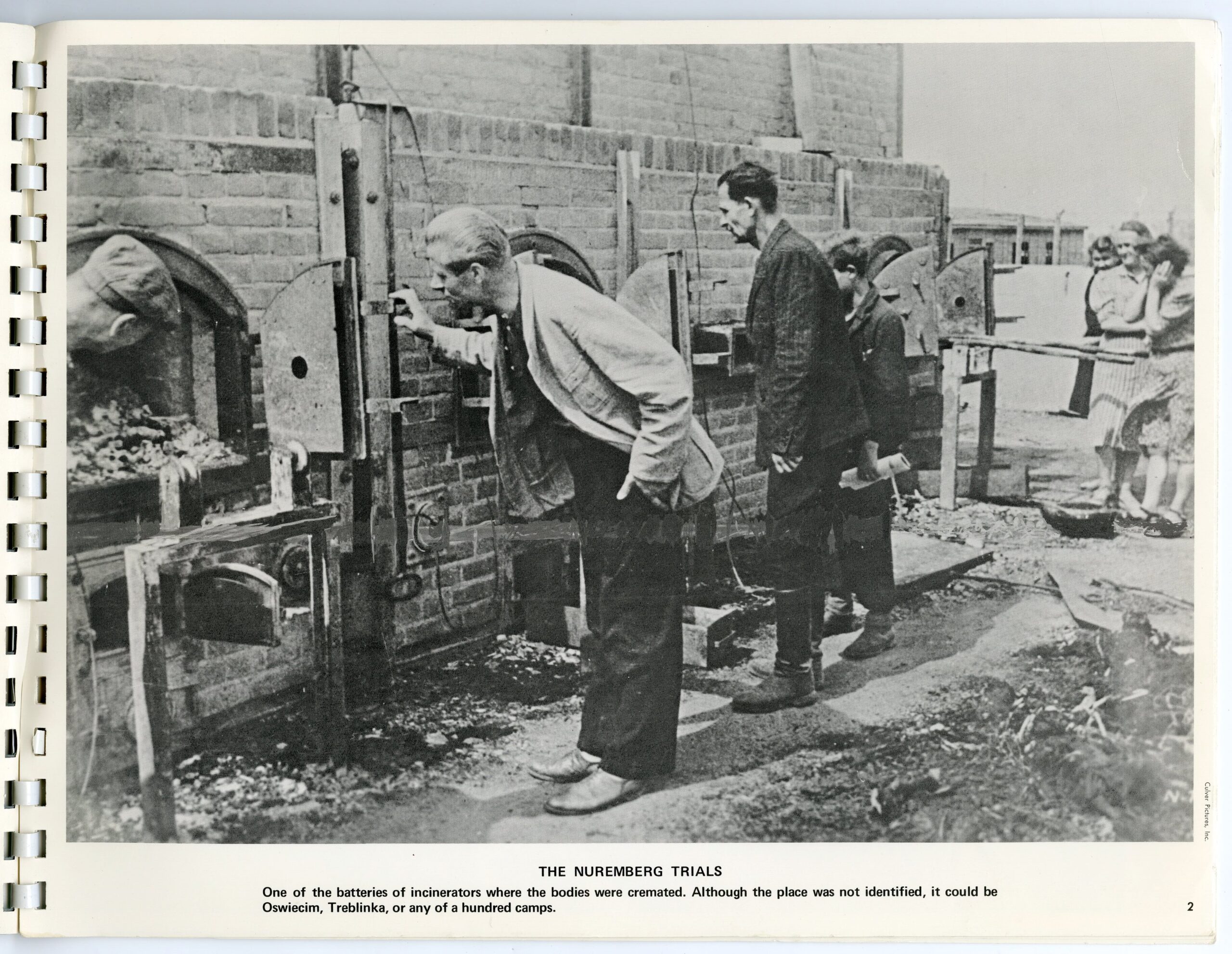 The Nuremberg Trial – an album of large photographs from the Nuremberg Trials, part of the educational Historical Prints series, published by The Perfection Form Company, Iowa, United States. C. 1950s.