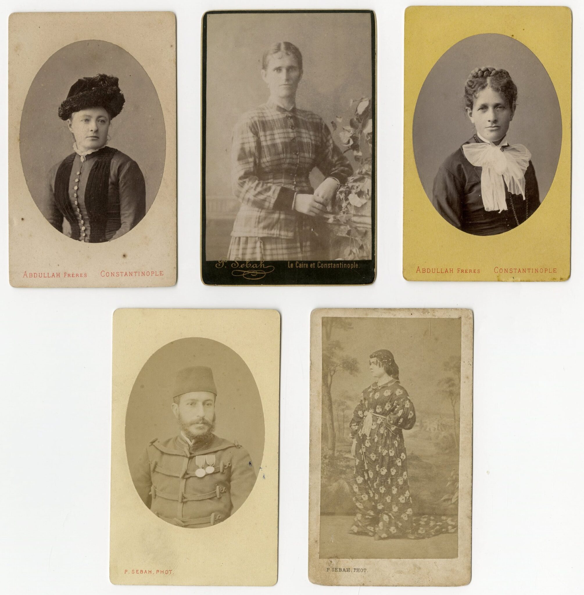 Five albumen photographs – portraits of Europeans and Orientals photographed by leading photographers of the Ottoman Empire, Abdullah Frères and Pierre Sébah. Late 19th century.