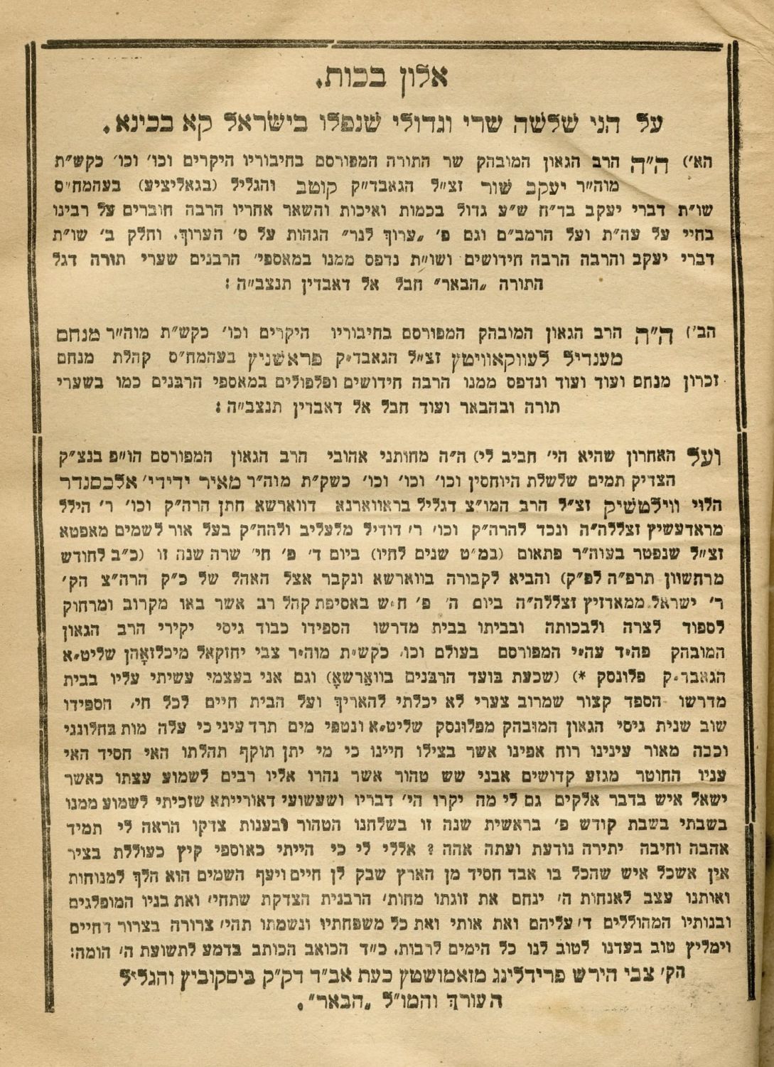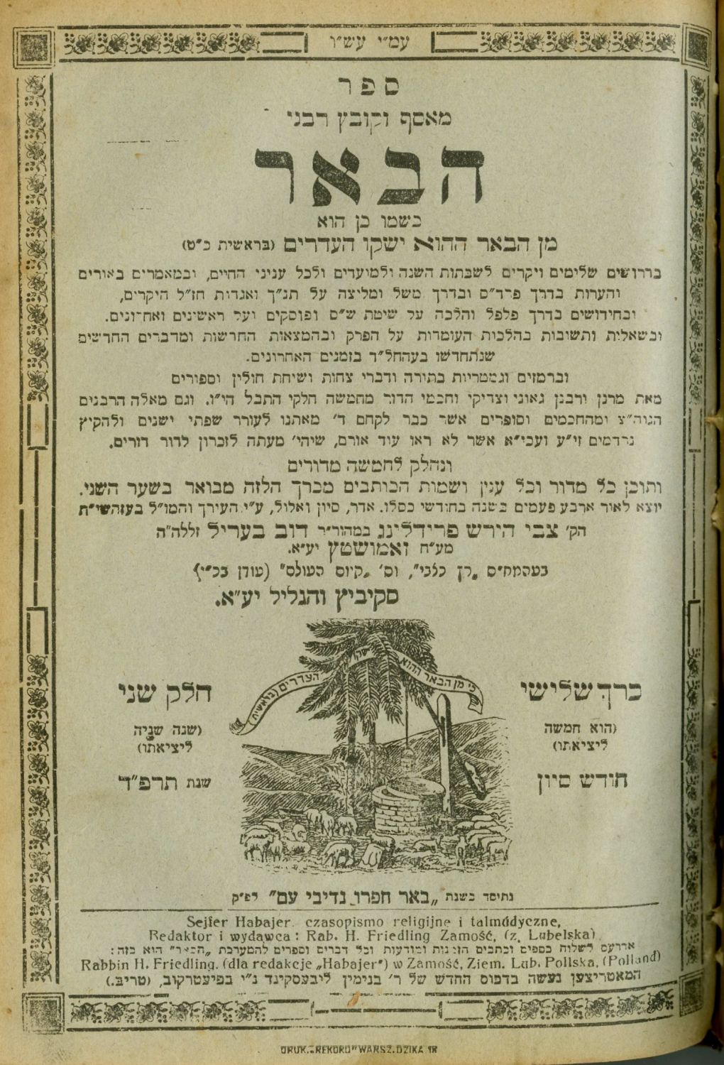 Habe’er – a collection and Torah issue. Published four times a year, edited by Zvi Hirsch Friedling of Zamosc. Pietarkov. All issues of 1924.