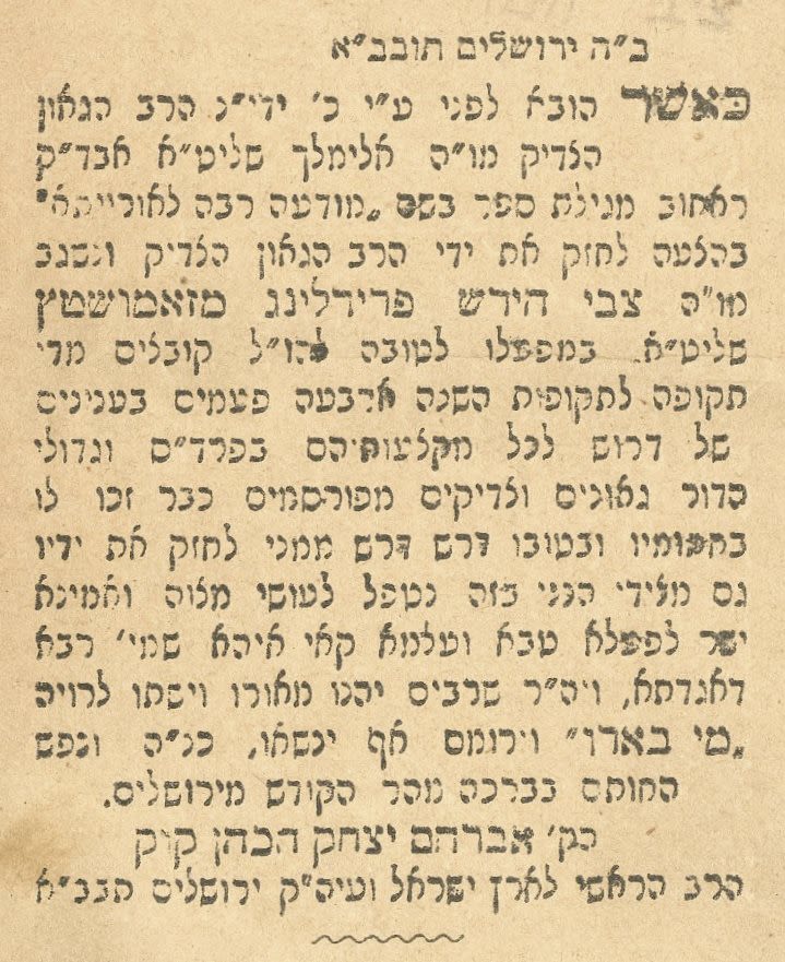 Among the agreements is the consent of Rabbi Kook, who writes: ‘The greatest geniuses of the generation, geniuses and famous Tzaddiks have already won it …’, Rabbi Yosef Chaim Sonnenfeld, Rabbi Aharon Cohen, son-in-law of Maran Hafetz HaChaim, and many more. Many of the words of the Torah that appear were sent to an editor on behalf of the gdoley Israel, sometimes anonymously.