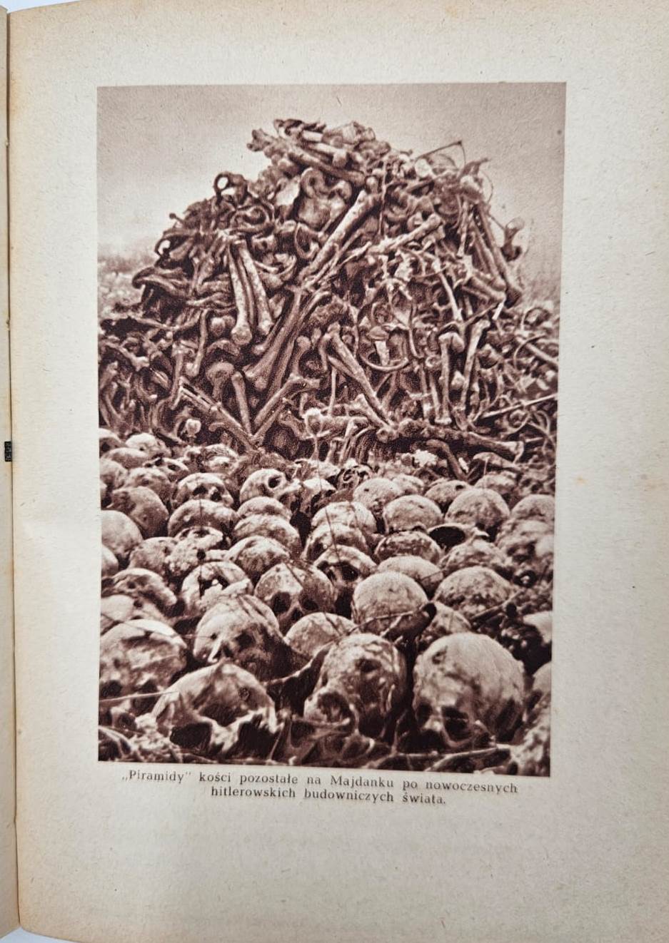The author describes in detail and at length the harsh conditions under which the camp operated and the Nazi hell as witnessed by his eyes, along with countless testimonies collected during his work for the Red Cross during the war and at the time of the camp’s liberation by the Soviets in July 1944. This is one of the important sources documenting the atrocities against the Jews at the camp: “The suffering of the Jews at Majdanek is indescribable… In just a few days, 21,000 Jews who arrived from Lublin were murdered, 400 burned alive… There were days when it was impossible to walk on the roads near the camp due to the stench of burning Jewish bodies…”. He also describes the constant hunger: “Hunger that twists the intestines and dulls the senses, pure hunger of animals. As a result, after only a few weeks, the strongest man was reduced to nothing but a body covered with skin, ” the harsh cold conditions: “The cold penetrated the body, reached the bones, and tortured until the prisoner could no longer move his limbs and stopped feeling…”, the diseases that ran rampant in the camp: “The overcrowded mass of unwashed prisoners, sometimes hundreds, even thousands, in single barracks, were a breeding ground for lice… Each of the released prisoners was so infested with lice that out of fear of spreading disease-causing bacteria, we received the newcomers at the P.C.K. office in a separate room. Despite extensive precautions, lice crawled everywhere after the released group passed through, and only with special treatment were they successfully removed…. Infectious diseases were common and almost constant: typhus and dysentery. Scabies was a daily event…”. The daily tortures that led to daily deaths: “The whistle blew incessantly from morning until night for any reason… The dogs were so well-trained that they did almost everything in a frenzy… There was no measure of beating, torture, or murder. The punishment, at best, was disproportionate to the crime committed. Moreover, in a large number of cases, no effort was made to identify the offense or search for the culprit. Responsibility was generally collective…”. How the crematorium operated to burn the bodies: “Three giant piles burned simultaneously. Three columns of fire blazed with heat. The air was so saturated with the stench of the bodies being consumed by the flames that the prisoners who worked in this ‘hell’ fainted…”, and the looting of the Nazis from the victims’ clothing: “The material evidence found by the committee in the camp at Field Six and in the warehouses belonging to the Gestapo on Chopin Street in Lublin sheds bright light on the vast scale of the looting of the murdered victims… Based on testimonies from witnesses, including captured SS men who worked at the camp, a massive looting system was uncovered, aimed at using every possession of the murdered…”.