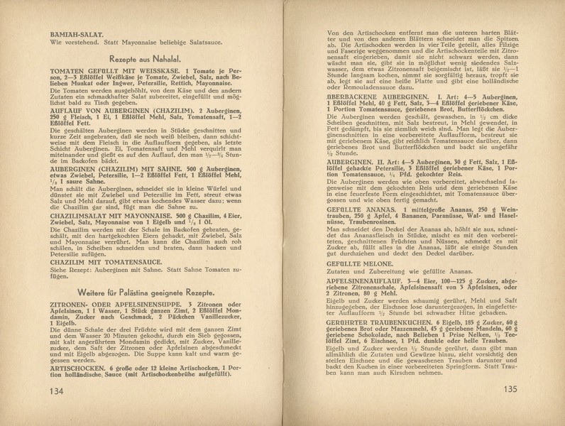 Contributors to the book include Dr. Lulu Goldhaber from Berlin, Stephanie Furchheimer from Frankfurt am Main, nutritionists from the Rothschild Hospital in Jerusalem, and the agricultural school in Nahalal.