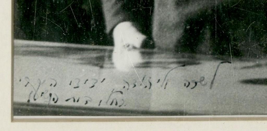 Black-and-white photograph of Rachel Yanait Ben-Zvi, wife of Yitzhak Ben-Zvi, the second President of the State of Israel – personally inscribed in her handwriting at the lower left: “To Sarah and Yehuda, my dear friends – Rachel, President’s Residence” [Israel, late 1950s].