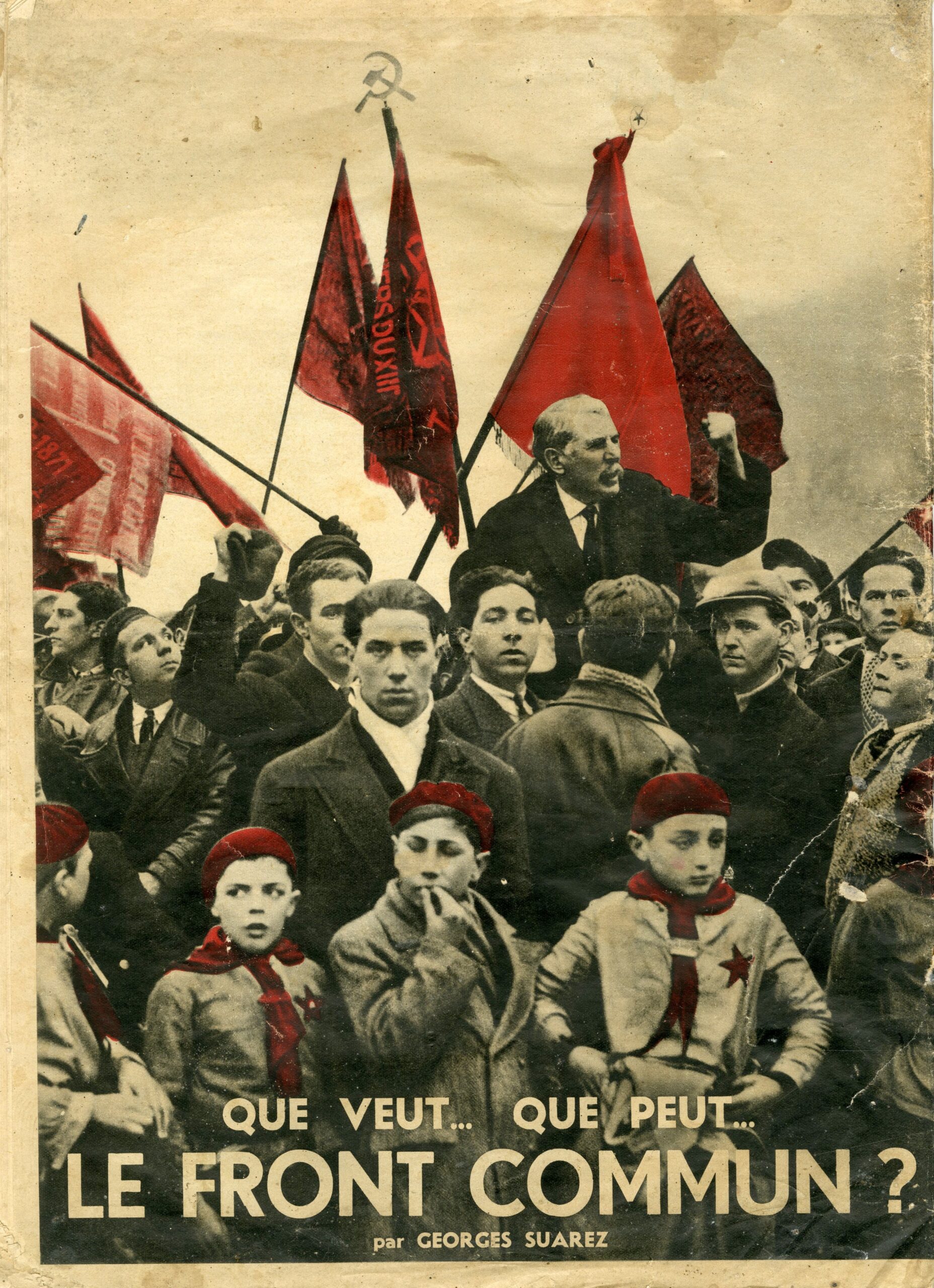 The document July 1935, titled Que veut… que peut… le Front Commun ? – “What does the Popular Front want and what is it capable of?”, a special issue published by “La Front Populaire” under the leadership of the French Jewish diplomat Léon Blum, aimed at curbing the rise of Nazism and Fascism in Europe. Edited by Georges Suarez, July 1935. Unusual for the period, the front cover and the final page are in color.