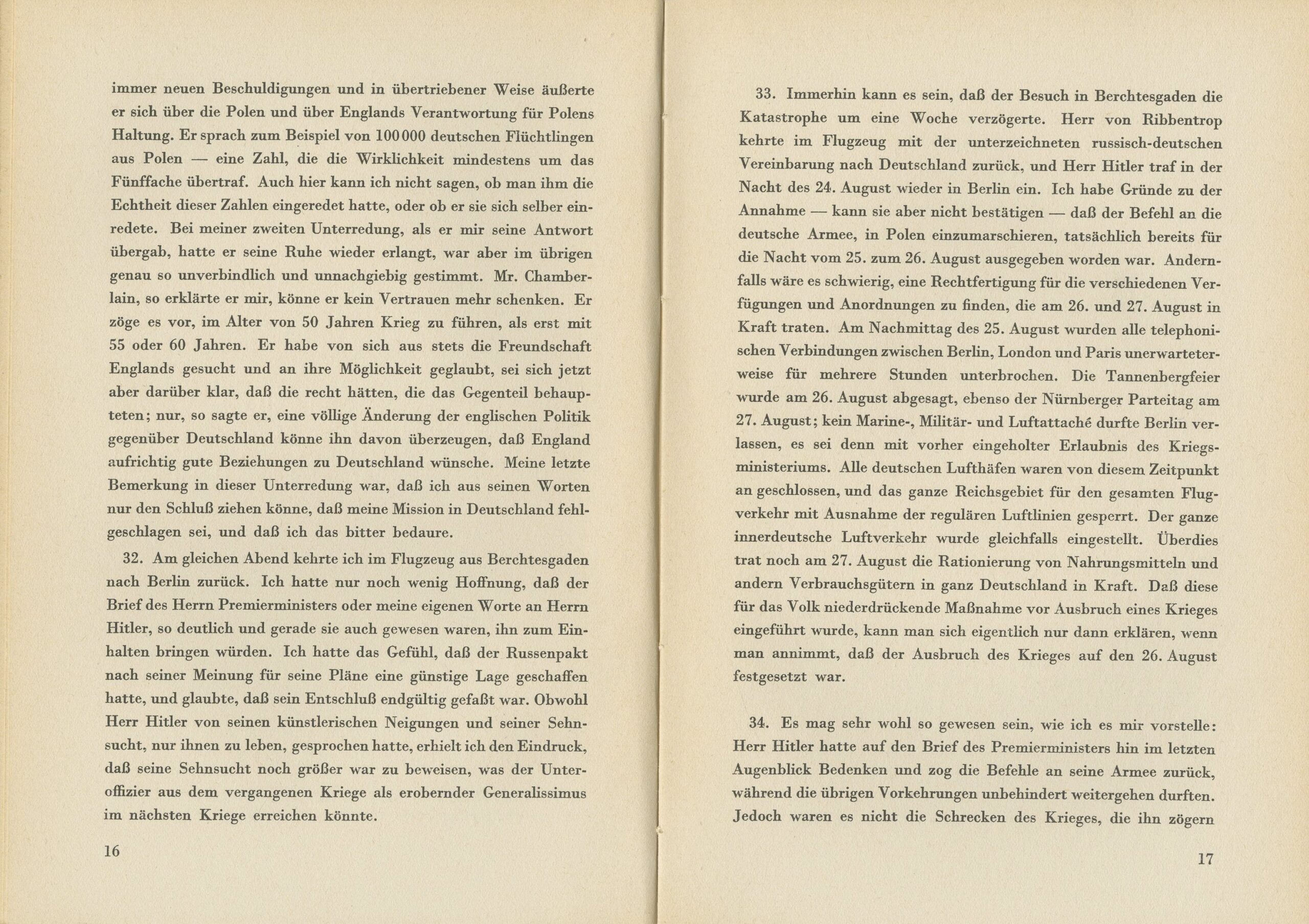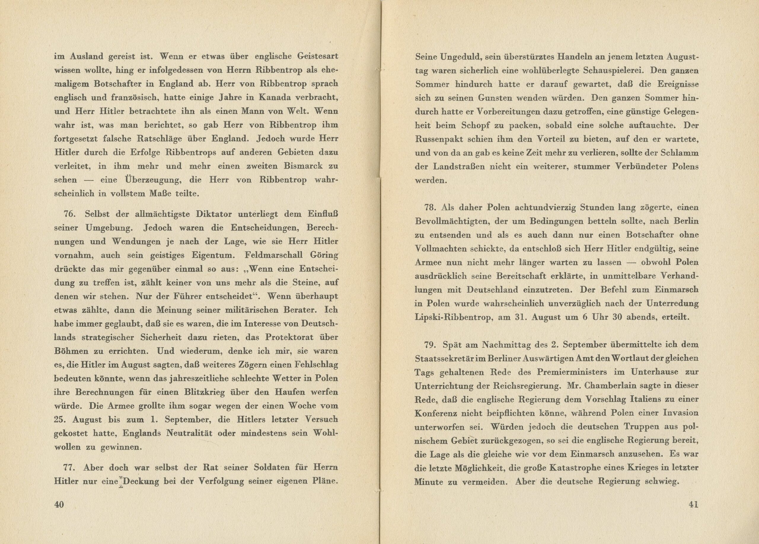 The Final Report of Sir Neville Henderson – The British diplomat who served as Ambassador of the United Kingdom to Germany from 1937 to 1939, detailing his mission in Berlin as of September 20, 1939, in a last-ditch effort to prevent Germany’s invasion of Poland. The report outlines the circumstances that transformed Germany into a totalitarian state under Hitler’s sole rule, as well as Henderson’s final attempts to avert war through direct negotiations with Hitler. Henderson vividly describes the workings of the Nazi propaganda machine, its manipulation of the masses, and the significant roles played by Joseph Goebbels, the Nazi Minister of Propaganda, and Joachim von Ribbentrop, Hitler’s close confidant and Reich Foreign Minister (later executed at the Nuremberg Trials for war crimes and crimes against peace), in inciting the German public to absolute obedience to the Führer’s will. Henderson pleads with the nations of Europe to see the reality clearly and understand that unless they rise to confront Nazi Germany, the law of racial supremacy will, in time, be applied to them as well. The core of the report focuses on Henderson’s final meetings with Hitler and senior SS leaders just before the invasion of Poland. In his last audience with Hitler, Henderson realized that Hitler was already set on war. Hitler, whom he describes as detached from reality, told him he preferred to fight a war at age 50 rather than at 55 or 60. He blamed Britain for Poland’s defiance and cited 100,000 German refugees from Poland—a figure at least five times higher than reality. Henderson saw clearly Hitler’s eagerness for war, and knew then that his mission had come to an end. In a final meeting with Ribbentrop, Henderson attempted one last diplomatic effort. But Ribbentrop, clearly unmoved, quickly read out a document concerning Britain’s alliance with Poland and its “responsibility for the deterioration of the situation, ” then threw the document on the table. When Henderson asked to read it, Ribbentrop dismissed him, saying it was “no longer current.” In a separate meeting with Hermann Göring, Henderson was told that all SS leaders strictly followed the Führer’s orders, and he described the conversation as “a talk that led nowhere.” He concluded that, from the German side, “everything was now ready for action.” Henderson promptly left Germany for the Netherlands. Shortly afterward, war broke out with Germany’s invasion of Poland.