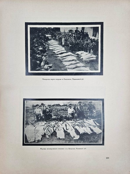 This publication documents how the Ukrainian nationalist army carried out a series of pogroms in the spring of 1919 during its retreat from Kyiv, including the massacre in Proskurov (February 15), in which 1,700 Jews were murdered in a single day, followed the next day by the slaughter of another 600 in Felshtin. In these pogroms, the perpetrators and those responsible were not punished, reinforcing among the attackers a sense that violence against Jews would go unchecked. The Jews viewed Symon Petliura – the head of the Ukrainian government – as directly responsible for the violence.