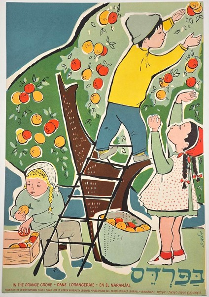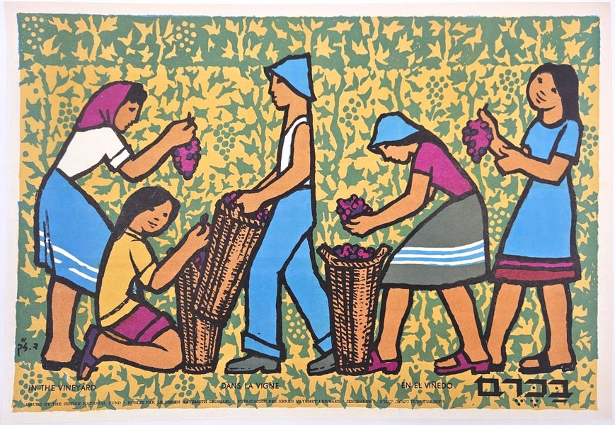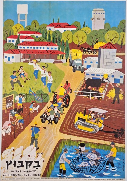 Color posters on themes of agriculture, the synagogue, the vineyard, the orchard, the chicken coop, the kibbutz, the village, the cowshed, and more. Designed by various artists.
