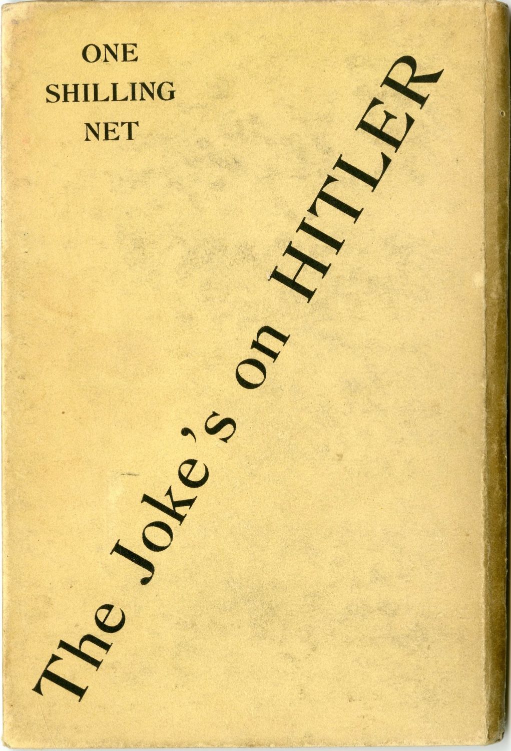 THE JOKES ON HITLER: UNDERGROUND WHISPERS FROM THE LAND OF THE CONCENTRATION CAMP, Collected by Count Alfred Hessenstein; Drawings by SPITZ – "הבדיחות על היטלר: לחישות תת-קרקעיות מארץ מחנה הריכוז", נאספו על ידי הרוזן אלפרד הסנשטיין; עם ציורים מאת SPITZ. מהדורה ראשונה. לונדון, 1939. מהפרסומים הבוטים, והאמיצים ביותר נגד המשטר הנאצי בזמן שיא תוקפו. נדיר.