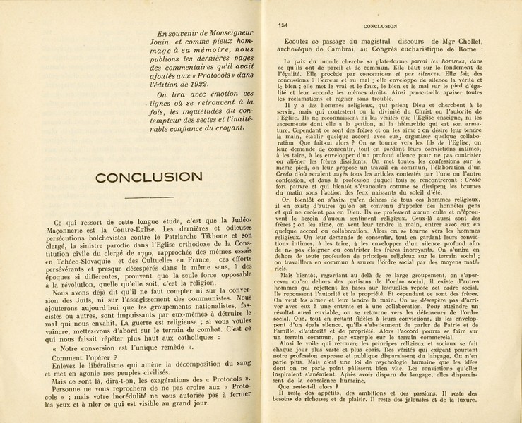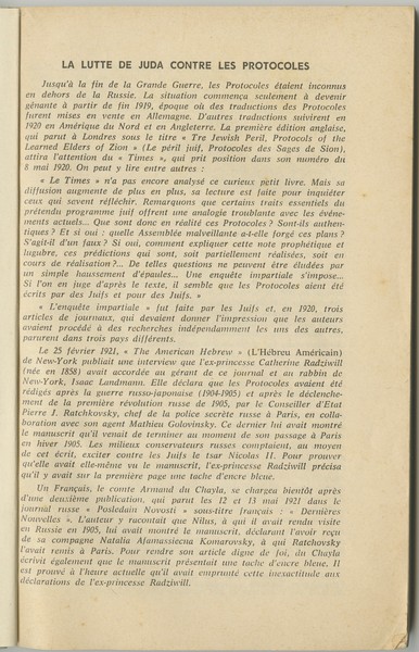 במבוא למהדורה זו הכותב מאשים את היהודים בהשתלטות על כל מוקדי הכח במדינות אירופה, בכלכלה, מסחר, פוליטיקה, משפט, אמנות, כחלק מהגשמת תכנית האב שלהם. כמו"כ הוא טוען שעל פי כתביהם של היהודים, וכן על פי תמלילים של נאומים שונים של מנהיגי היהדות העולמית בעשורים הראשונים של המאה ה־20, היהודים פועלים כדי להגשים את התכנית שנרקמה ב"פרוטוקולים" המקוריים של 1897. הכותב סוקר את המהדורות השונות של הפרוטוקולים אשר יצאו בשפות שונות החל מראשית המאה ה־20 עד שנות ה־30, וכותב כי בעותקים שונים של "הפרוטוקולים" שנמצאו הושמטו קטעים בהשתדלות היהודים, ולמעשה היא צונזרה, ולפנינו מוגשת המהדורה המלאה.