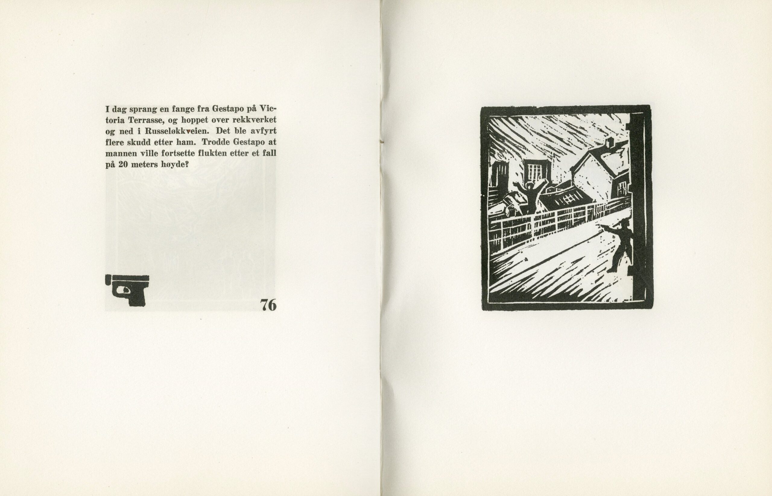 "היום נמלט אסיר מהגסטפו במרפסת ויקטוריה, וקפץ מעל המעקה ומורד Russeløkkveien. אחריו נורו מספר יריות. האם הגסטפו חשב שהאיש ימשיך בבריחה לאחר נפילה מגובה 20 מטר?"