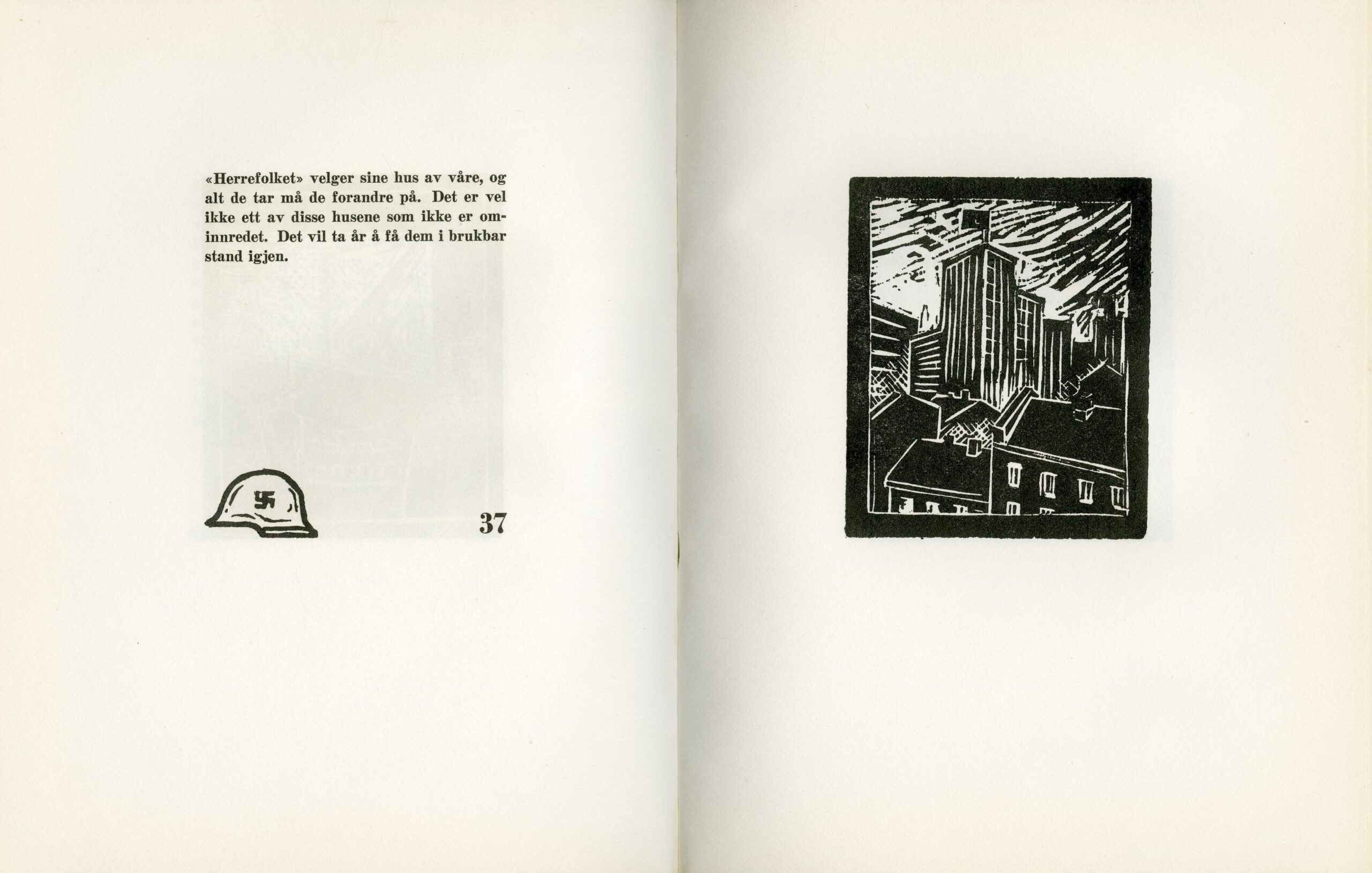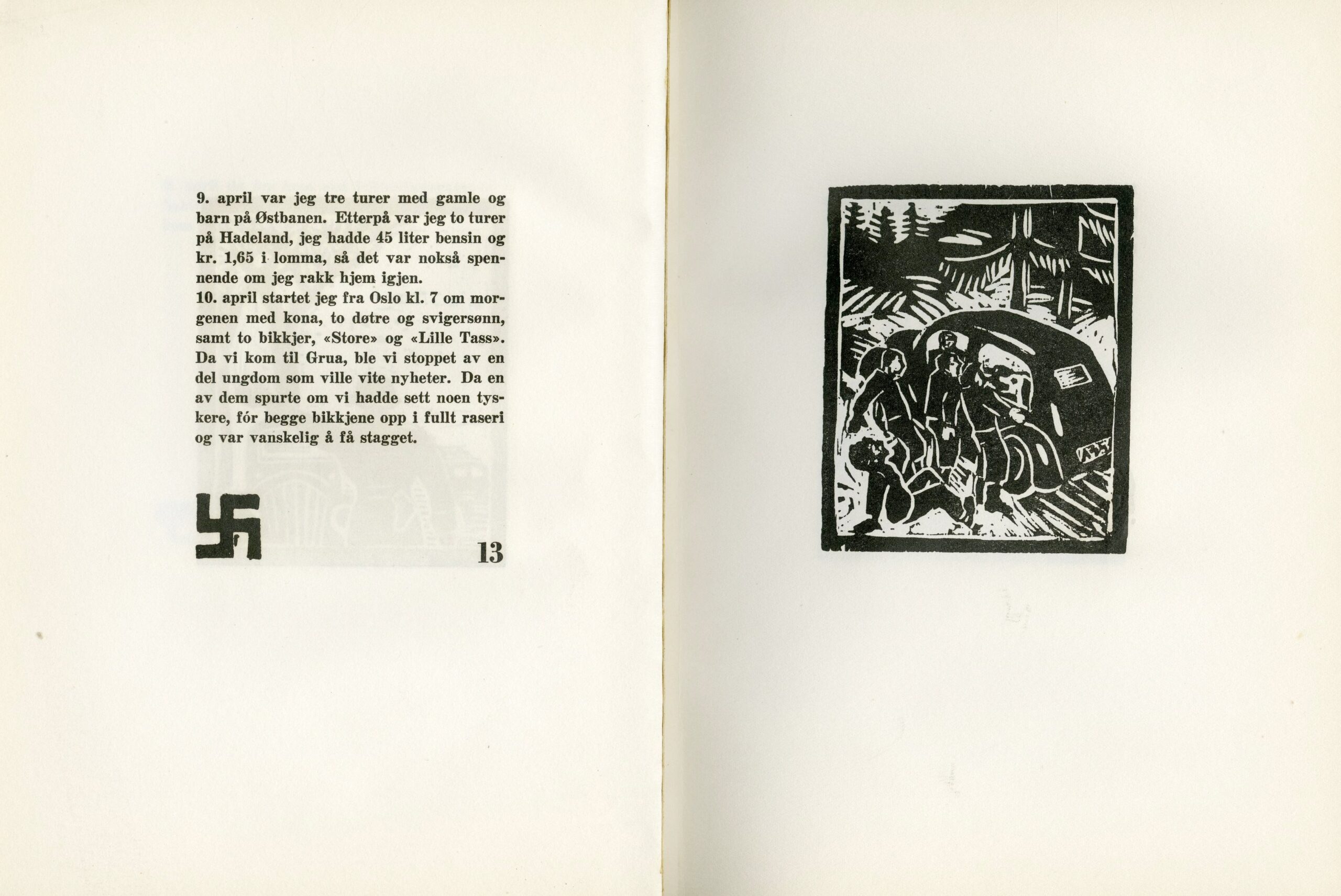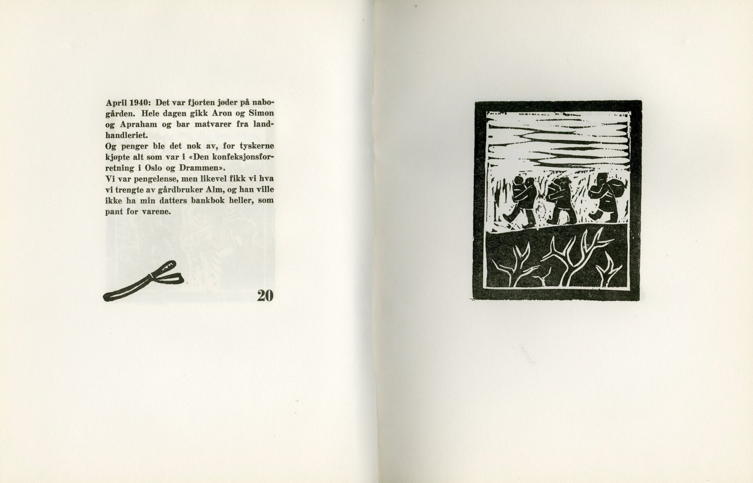OG SÅ KOM BEFRIERNE Utdrag av min dagbok gjennom – "ואז הגיעו המשחררים – קטעים מיומני לאורך 5 שנים" מאת Albert Jaern – יומן תיעוד שנות התופת שכתב אלברט יירן בימי הכיבוש הנאצי בנורווגיה, מלווה בעשרות חיתוכי עץ שייצר בזמן המאורעות. הוצאת Ekko Forlag. אוסלו – 1945 – מהדורה ראשונה. נורווגית.
