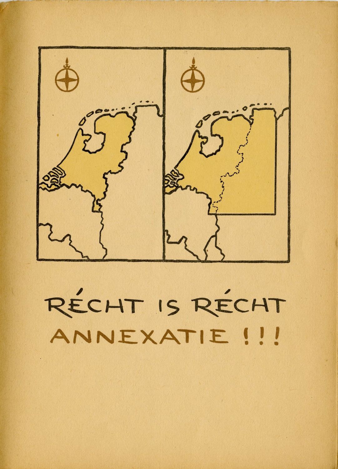 פרסום הולנדי הקורא לספח להולנד שטח גרמני לאחר מלחמת העולם השנייה. בכל דפי החוברת איורים קריקטורים הממחישים את הצורך של הולנד בשטח החדש בעקבות נזקי המלחמה, ביניהם קריקטורות של "היטלר הבא" בצלב קרס ממנו יש להתגונן מראש, המחאה של "יורשי היטלר בברלין", צפרדע נאצית והכיתוב: "מכיוון שאתה לא יכול לתלוש את הנוצות מהצפרדע, נצטרך לקחת חלק מהמרעה שהוא נמצא עליו. סיפוח!", נשר צלב הקרס קצוץ כנפיים והכיתוב: "עכשיו יש לגזום מהציפורים המסכנות, עכשיו! עכשיו!", מפה של "לפני" הסיפוח, ו"אחרי", ועוד.