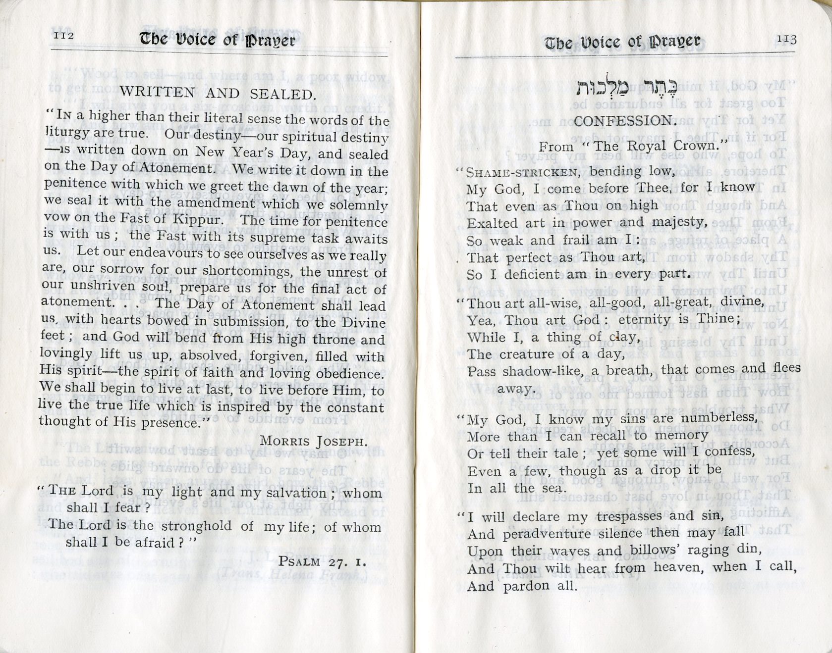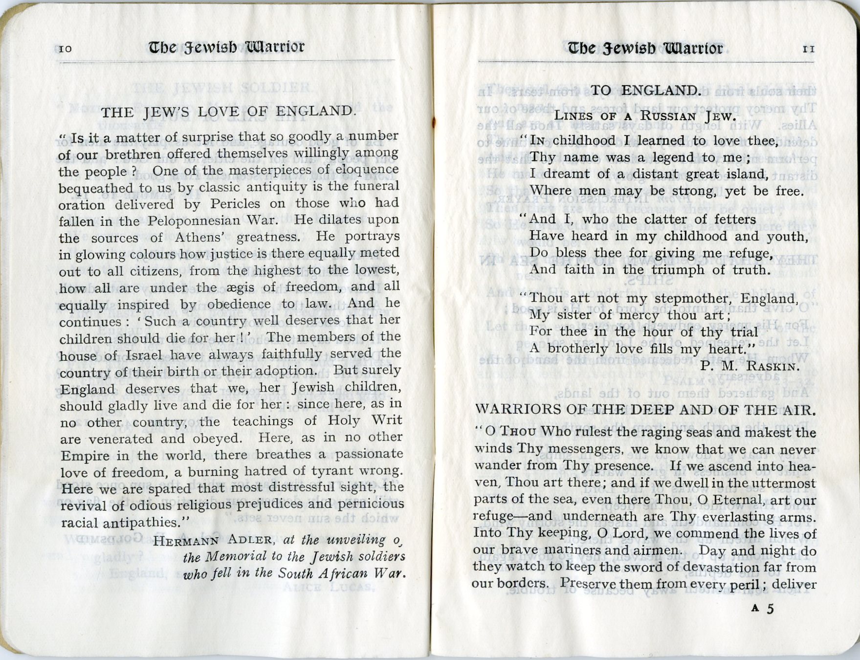A Book of Jewish Thoughts for Jewish Soldiers & Sailors: Selected and Arranged – מאת רבי J. H. Hertz – רבה הראשי של בריטניה רבי יוסף צבי הרץ, הוצאת EYRE & SPOTTISWOODE, LTD, לונדון 1917 – מהדורה שלישית הכוללות קטעים רבים שלא הופיעו במהדורות הקודמות. ספרון כיס – תפילה והגות יהודית שנדפס במיוחד עבור מלחים וחיילים יהודים אשר שרתו בצבא הבריטי במלחמת העולם הראשונה.