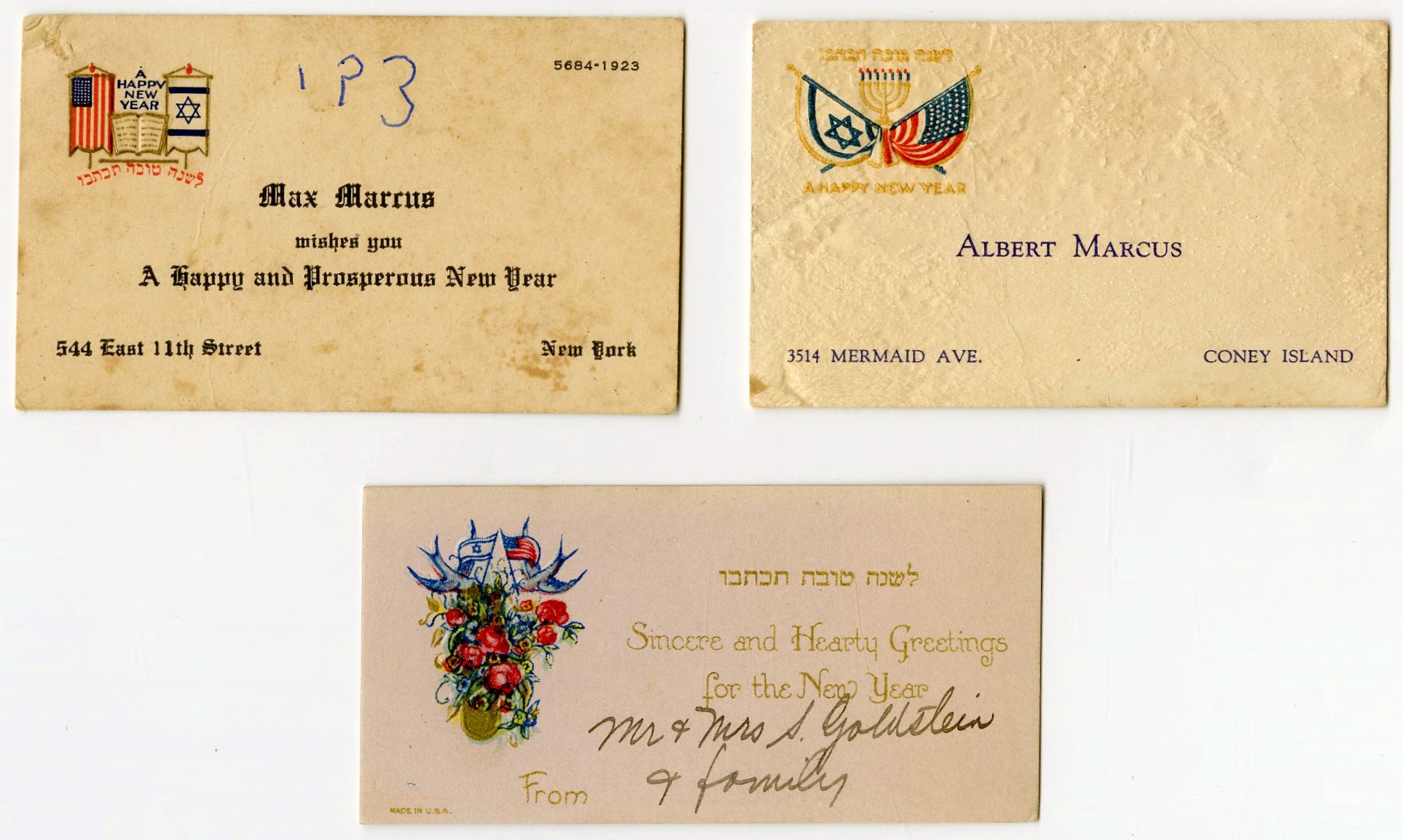 שלוש גלויות שנה טובה מצולמות Real photo – תמונות המברכים וברכת שנה טובה. תל אביב 1930 ו 1935.
