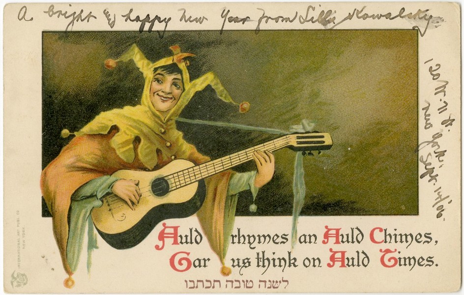 בשתי גלויות סביב המצולמים תצלומים מירושלים העתיקה: קבר רחל, הכותל המערבי, יד אבשלום, רחוב יפו. בגלויה משנת 1935 איור בסגנון זאב רבן – חלוץ זורע את הקרקע אל מול השמש העולה וברכת שנה טובה בעברית ואנגלית.