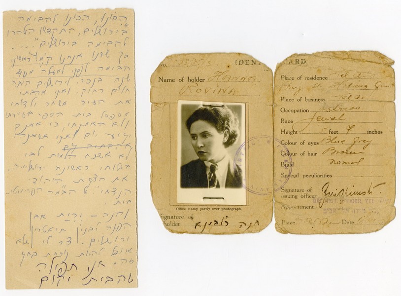 תעודת הזהות של רובינא עם מילוי הפרטים בכתב ידה וחתימתה ותמונת הפספורט שלה – הונפקה בתל אביב.