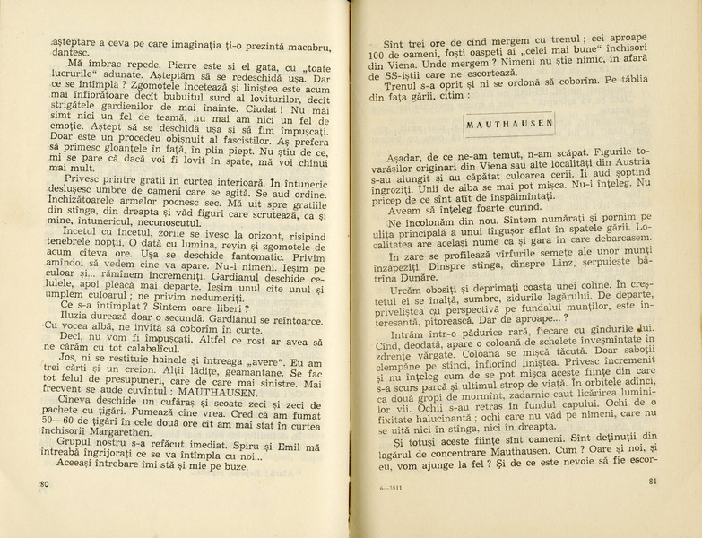 15 Țigări – מאת Alexandru Antoniu (Colonel în rezervă – קולונל במילואים) "15 סיגריות" – עדותו של סגן מפקד גדוד רומני אשר נתפס בידי הנאצים ותיעד מזכרונו לאחר המלחמה את החודשים בהם שהה במחנה מאוטהוזן ("רק את הדברים החשובים" כלשונו) בין חיים למוות. הוצאת Editura Militara. רומניה, 1966 – מהדורה ראשונה. נדיר ביותר. רומנית.